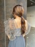 人気のパンツドレスのワンピースver. 《dress》 一枚で着映えすること間違いなし! アシンメトリーのフリルデザインが 華やかで美しい印象に♥ スカート部分はコクーンシルエットで 腰周りをカバーしてくれます◎ 更にカッティングデザインになっているので 脚長効果もあり全体的にすらっとした印象に✨ 《shoes》 チュール素材のクリアヒールパンプス ストラップ付きなので安定感抜群で 何より疲れにくくて歩きやすい! どこから見ても綺麗に見せてくれます♥