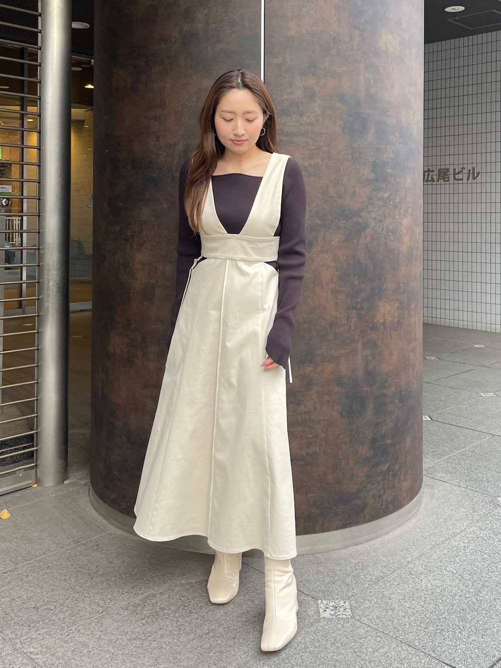 MISAKI KUBO(LAGUNAMOON)のブーツ「ミニマルカーブフォルムヒールショートブーツ」を使ったコーディネート