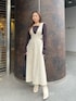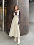 カジュアルになり過ぎない ジャンパースカートコーデ 《knit》 ネックラインやデコルテ周りを 綺麗に見せてくれるニットプルオーバー♥ 袖口のデザインもさり気なく 普通すぎないポイントに♥ 色違いで持っていても重宝するアイテムです✨ 《skirt》 トップス次第でオールシーズン使えるので 着るだけでお洒落に決まります♥ ウエストのカッティングが抜け感を プラスしてくれてフィット&フレアが 女性らしい印象に🫶🏼 157cm、Sサイズ着用で足首が見える くらいの丈感です。 《shoes》 クッションが効いてて太ヒールで安定感が 抜群でとても歩きやすいです✨ なんと言ってもつま先の細めのスクエア デザインと横から見たときのヒール部分の フォルムが全体を美しく綺麗に見せてくれます♥ ワンピース、パンツ、スカート、 どんなスタイリングにも合わせやすく 長く使って頂けるので自慢できる ヒールショートブーツです!