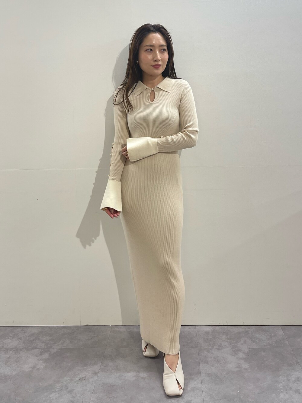 MISAKI KUBO(LAGUNAMOON)のワンピース「シャツカラーカフスニットワンピース」を使ったコーディネート