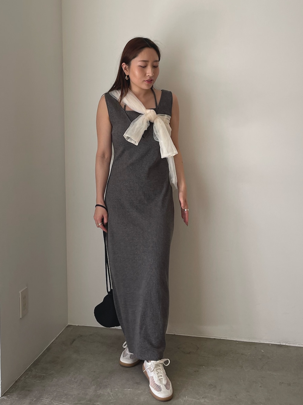 《onepiece》 程よく厚みのあるリブカットソーの レイヤードデザインのカットソーワンピース🫧 レイヤードしたようなデザインが抜け感をプラス! フィット感があまりないサイズですが綺麗なラインを 作ってくれるのでボディラインを綺麗に見せてくれます✨ 1つ持っていると重宝するアイテムです♥ 《shirt》 チュール素材のシアーシャツ タックが入ったボリューム袖が 存在感をプラスしてくれます✨ 長過ぎない丈感なのでボタンを閉めて トップスとしてもお使い頂けます○ 《shoes》 メッシュ素材のオリジナルスニーカー👟 通気性もよく中敷には抗菌防臭素材を使用しており 夏も涼しくサンダル感覚で履いていただけます〇 普段23.5〜24.0cmでSサイズがぴったりでした。