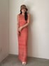 《onepiece》 立体的なメッシュ編地と裾のフリンジが アクセントになったニットワンピース♥ 程よく身体に沿うサイズ感です〇 インナーキャミワンピースがセットになっており 暑い時期にも涼しく着ていただけます✨ 《shoes》 ヒールがクリアになっているので抜け感あり♥ 足の甲の部分がクッションになっていて歩きやすさ抜群です! こちらはサンプルのためMサイズを着用しておりますが、私は普段23.5~24.0サイズで Sサイズでちょうどいいです〇