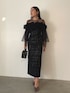 《dress》 チュール×ジャガードが一気に華やかさをプラス してくれ、肩回りを華奢見せしてくれるシルエット なのが嬉しいポイント✨ 柄が浮き出て見えるのでお呼ばれ結婚式や二次会、 同窓会にもぴったりな1着です♥ カップインなのでお下着なしでご着用いただけます〇