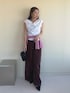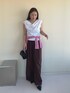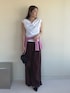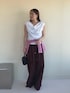 《tops》 ドレープネックとオフショルダーと2WAYで 着用可能なカットトップスです♡ 少し張り感がある素材なので程よく 立体感のあるシルエットにしてくれます✨ 暑い日に嬉しい接触冷感、抗菌の機能素材を 使用しています!(無地のみ) 《pants》 ナイロン素材のリラックスパンツ♡ シルエットはワイド過ぎず履きやすい リラックス感のある履き心地です🌸 シューズはパンプスで合わせるのが カジュアル見えしすぎずおすすめです♡ 同素材のブルゾンとキャミソールの 展開もございます♡