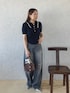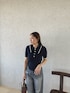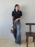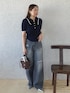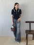 《tops》 夏でも着用しやすいハイツイスト糸の ニットプルオーバーです♥ 金ボタンとポロネックデザインがモダンで クラシカルな印象に✨ コンパクトなサイズ感なのでアウトスタイリング でもきれいに着こなせるバランスになっております! 《denim》 セミワイドパンツをカービーに仕上げた程よい リラックス感がありながらも綺麗に見せてくれます〇 いつものデニムパンツをアップデートさせたい方におすすめ♥