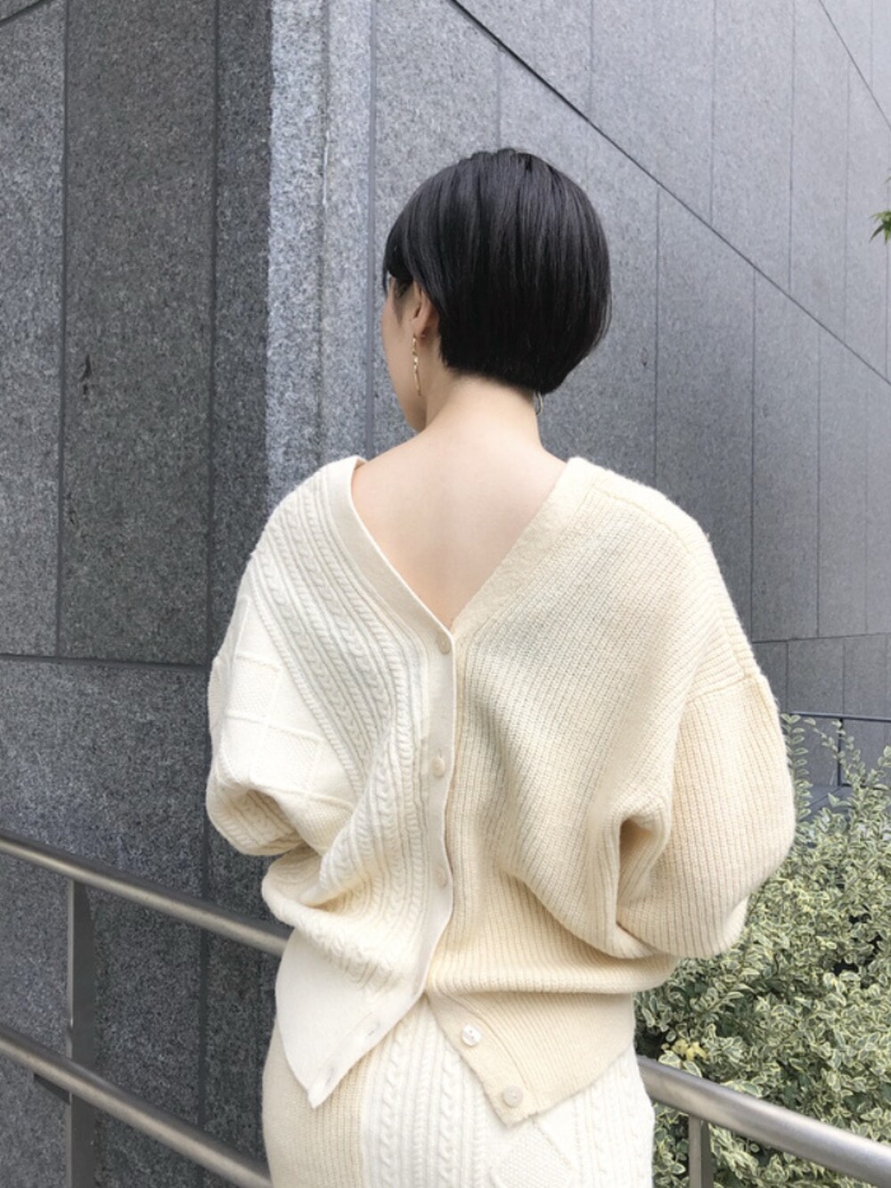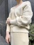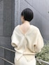 編み方を変えて1枚になったデザインがおしゃれな印象。 カラーツートーンになっているので、白のセットアップも綺麗めすぎずに着やすいです。
