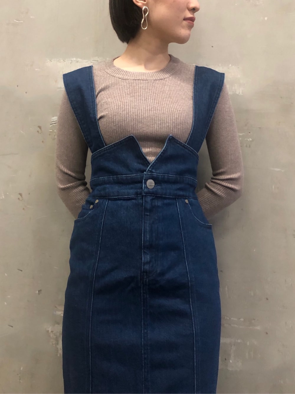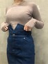 ハイウエストで、体のラインをきれいに見せてくれるジャンパースカート! 私はシンプルなリブニットと合わせて、大人のカジュアルコーデに仕上げました。 ウエスト位置がかなり高めに作ってあるので、腰位置が高く見え、スタイルアップ効果抜群◎ 163センチでSサイズ着用、ヒールを履いてすねくらいの丈感です。 150センチくらいの方だと、Sサイズで少し長めの足首にかからないくらいの丈感で着て頂けると思います♡ フロント部分には深めのスリットも入っているので、長めでも足がちらっと見えて可愛いです! ストレッチの効く素材を使用していて、後ろが一部ゴムになっています。ゆったり着れてタイトスカートの窮屈さがなく着心地も楽ちんです♡ 合わせたリブニットは、ラグナムーンの毎年の人気商品♡ 肌に吸い付くようなもちもちとした生地で、とにかく着心地が良い! シンプルながらも、くすんだブラウンカラーが女性らしい印象に見せてくれますよ〜! 肩紐は取り外し可能なので、春になったら白のブラウス等と合わせて、デートコーデにも!