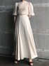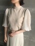 デザインが特徴的なアウターなので、中のお洋服はワントーンシンプルに。 今年トレンドのシアーな袖口のトップスを合わせて、旬なスタイリングに仕上げました。 オールホワイトコーデの時は、ハイウエストなボトムスを合わせてトップスをインすると全体がスッキリした印象になっておすすめです! フロント部分、バックのプリーツのデザインがポイントで、さらっと羽織るだけでおしゃれ見えするコーデに。 かっちりなりすぎないデザインで、フェミニンからカジュアルまで、色々なテイストのお洋服との相性も抜群ですよ!