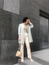 ロングジャケットをメインに淡色でまとめた綺麗めコーデに。 ジャケットの袖をロールアップすると、こなれ感がでた着こなしになるのおすすめです。 羽織りを脱ぐと、デコルテラインが綺麗に見えるトップスで女性らしい印象のパンツスタイルコーデは、オンオフどちらも使って頂けますよ!