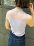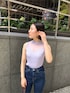 人気のシアーTOPSシリーズがノースリーブで登場!! 春夏らしいやわらかいカラーのラベンダーはフェミニンな印象に。 少しカジュアルに合わせたいと思ったのでボトムスはスッキリしたシルエットが特徴のストレートデニムをチョイスしました。 デコルテラインが綺麗に見えるトップスは肌見せが増えるこれからの時期に大活躍間違いなしです!
