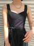 夏でも黒を可愛く着たい!と思って選んだ、パイピングのデザインがポイントのビスチェワンピース。 コットン素材なので、さらっとした生地感のワンピースは気温の高い日でも肌あたりが良く、着心地も抜群です! 163センチの私はSサイズで足首がしっかり見える丈感なので、150センチ位の小柄な方でも丈が長すぎることなく着ていただけると思います。 ワンピースのデザインが特徴的なので、小物はシンプルに。 足元は重たくならないようにクリア素材のブラウンを合わせてみました!