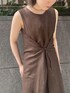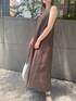 真夏の暑い日に着たい、リネン素材のリラックスしたワンピース❤︎ 大人っぽい雰囲気で着れるブラウンを選びました! このワンピースはウエストのボタンで2wayでの着こなしができるので、1枚で2パターンの着こなしを楽しめるのが魅力です❤︎ リラックスしたい日や、スニーカー等を合わせたラフなスタイリングが気分の時はふわっとフレアーシルエット。 ウエストのボタンを閉めた、タイトシルエットが気分な時は、ストラップサンダルや高さのあるヒールを合わせて女性らしく! おうちで手洗い可能なリネン素材は、気軽に着やすいので気分に合わせてこの夏沢山着て頂きたいアイテムです! シンプルなデザインなので、大振りピアスを付けたりカチューシャを付けたり、、小物選びも楽しめそうです❤︎