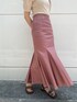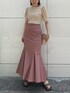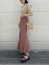 マーメイドスカートのピンクが映えるコーディネート。 トップスはシンプルですが、ボートネックで顔まわりがすっきり見えるのでマスク必須な今、嬉しいデザイン! 肩にタックが入っており、少しふわっとした袖のシルエットが可愛いですよ❤︎ マーメイドスカートは、1枚でコーデがおしゃれ見えする万能アイテム。 大人っぽいくすみピンクで肌馴染みが良く、普段色物が少ない私でも取り入れやすいカラーアイテム!少しおしゃれしたい気分の日にシンプルなTシャツと合わせてよく着ています! マーメイドスカートは腰張りや太もも周りのラインが気になり苦手意識があったのですが、このスカートはシルエットを拾いすぎず綺麗に見せてくれてとても感動! 同じ悩みを持つ方にも是非試して頂きたいアイテムです! シューズ・バッグは、どんなコーデにも相性抜群なシンプルなものを合わせました❤︎