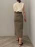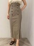 人気のフロントボタンスカートに秋の新色が登場❤︎ 私は、グレーを白のトップスで合わせて柔らかく女性らしい印象のコーディネートで来てみました。 足元は黒のサンダルで合わせて少しカジュアルダウン。 スカートはフロント部分のボタンがアクセントになり、綺麗めにもカジュアルにも着て頂きやすい着回し力抜群なアイテムですよ〜!! ストレッチの効いた素材を使用しているので、オフィスワークで長時間座った作業も、お出かけでたくさん歩く日にも窮屈さのないタイトスカートはシーンに合わせたコーディネートで大活躍間違い無しです❤︎ ハイウエストでスタイルアップして見えるので、小柄さんにも大好評のスカート。 私は163センチで太ももやお尻が気になるのでMサイズを着用しています! 合わせたトップスは、よく見るとジャガード柄がかわいい❤︎ 肩にタックの入ったデザインなので、二の腕がスッキリ見えるのが嬉しいポイントです!