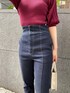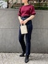 秋色のボルドーニット×デニムで大人なカジュアルスタイリング。 デニム=カジュアルなイメージがありますが、インディゴカラーのテーパードシルエットでどこか綺麗目な印象に。 縦に入ったステッチが、足をスッと長く真っ直ぐに見せてくれるのもポイントなんです! LAGUNAMOONのデニムは、履き心地にも拘りやわらかいストレッチ素材を使用しています! デニムとは思えない履き心地の楽さなので、一度履くと病みつきになること間違いなしですよ❤︎ あまりカジュアルになりすぎたくないけど、デニム履きたい、、!そんな方に是非試して頂きたいアイテムです! 合わせたトップスは、ボレロを羽織ったような珍しいデザイン❤︎ シンプルなのでどんなボトムスとも相性抜群なんです! 肘までしっかり袖があるので、9月〜10月初旬まで1枚で着て、肌寒い日はアウターなどで調整しながら使いやすいアイテムです! 気温差が激しい秋口に重宝する!と店頭でも大人気! シューズは、細めのシルエットが綺麗な印象なので綺麗目な着こなしが好きな方におすすめです!