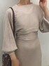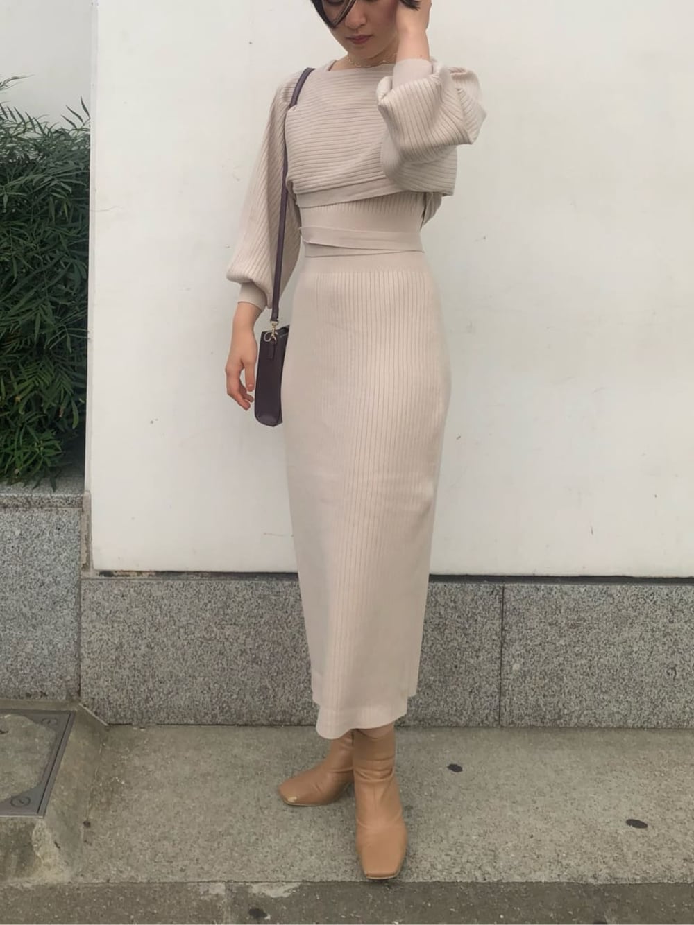 店頭でも大人気のショート丈ボレロがセットになったワンピース! アイボリーは上品で綺麗目な印象に見えるので、大人女子に人気のカラーです。 ボレロはゆるっとしたサイズ感が上半身を華奢見えさせ、ショート丈なのでウエストがキュッと細く見えます。メリハリのあるシルエットでスタイルアップ効果抜群! 160㎝の私がMサイズを着用してくるぶしが綺麗に見える丈感なので、150㎝の小柄な方でも丈の長さ心配なく着ていただけます。シンプルなデザインなので、小物で差し色を+するのがおすすめ!