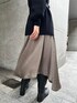 大人っぽく、モードな印象のセットアップ。 今年トレンドのチュニック丈のニット+サテンのイレヘムスカートの組み合わせは、セットで着るだけでぐっとおしゃれ見えします! セパレートデザインなので、別々の着回しも◎ ショートブーツはもちろん、冬定番のロングブーツとのコーディネートも相性抜群なのでおすすめ。