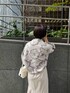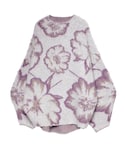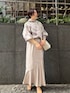 大きな花柄が特徴的なニットを主役にコーディネート。 パッと目を惹くデザインで、福岡店ではWEBサイトやインスタグラムを見てのお問合せがかなり多かったアイテム。 ルーズなシルエットで起毛感があるので女性らしさのでるフォルム感がポイントです。 今回は、お気に入りのマーメイドスカートを合わせて綺麗目なスタイリングを組みました。 このスカートは、縦ラインがスッキリして見えるのでゆったりしたニットとの相性抜群! 程よくハリと光沢感のある生地なので上品な印象のコーデに仕上がります。