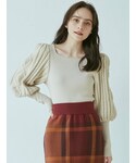店頭でも人気の女子っぽさ全開のコーディネート。 簡単におしゃれ見えする白×ベージュのワントーンコーデがお気に入りです。 インナーのトップスは、ケーブル編みのボリュームスリーブがポイント。スクエアネックなので袖のボリュームがきになる方でもスッキリした印象で着ていただけます。 身ごろはさらっとしたニット生地なので着心地も抜群。 スタイルアップするために、ボトムスはインしたスタイリングがおすすめです。 ジャンパースカートは昨年登場したLAGUNAMOONで人気のシリーズ。 高めのウエストの切り替えなのでキュッと締まって脚長効果抜群。 スカート部分にはマチが入っているので、ふわっとした綺麗なフレアーシルエットが目を惹きます。 オールシーズン着れる生地なので、夏になったらTシャツなどと合わせて着回しも楽しめる!と福岡店でも人気のアイテムです。