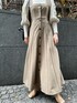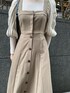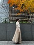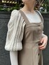 店頭でも人気の女子っぽさ全開のコーディネート。 簡単におしゃれ見えする白×ベージュのワントーンコーデがお気に入りです。 インナーのトップスは、ケーブル編みのボリュームスリーブがポイント。スクエアネックなので袖のボリュームがきになる方でもスッキリした印象で着ていただけます。 身ごろはさらっとしたニット生地なので着心地も抜群。 スタイルアップするために、ボトムスはインしたスタイリングがおすすめです。 ジャンパースカートは昨年登場したLAGUNAMOONで人気のシリーズ。 高めのウエストの切り替えなのでキュッと締まって脚長効果抜群。 スカート部分にはマチが入っているので、ふわっとした綺麗なフレアーシルエットが目を惹きます。 オールシーズン着れる生地なので、夏になったらTシャツなどと合わせて着回しも楽しめる!と福岡店でも人気のアイテムです。