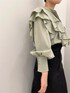 春らしいブラウスコーディネート。 今年トレンドのフリルデザインが特徴的なので、ボトムスはシンプルなものでも一気に今っぽいコーディネートが完成する優秀アイテムです。 オトナ女子でも着やすいくすみグリーンは上品な印象。 デニムで合わせたカジュアルなコーデや、キレイめパンツやスカートを合わせたオフィスコーデまで幅広く着こなして頂けます。