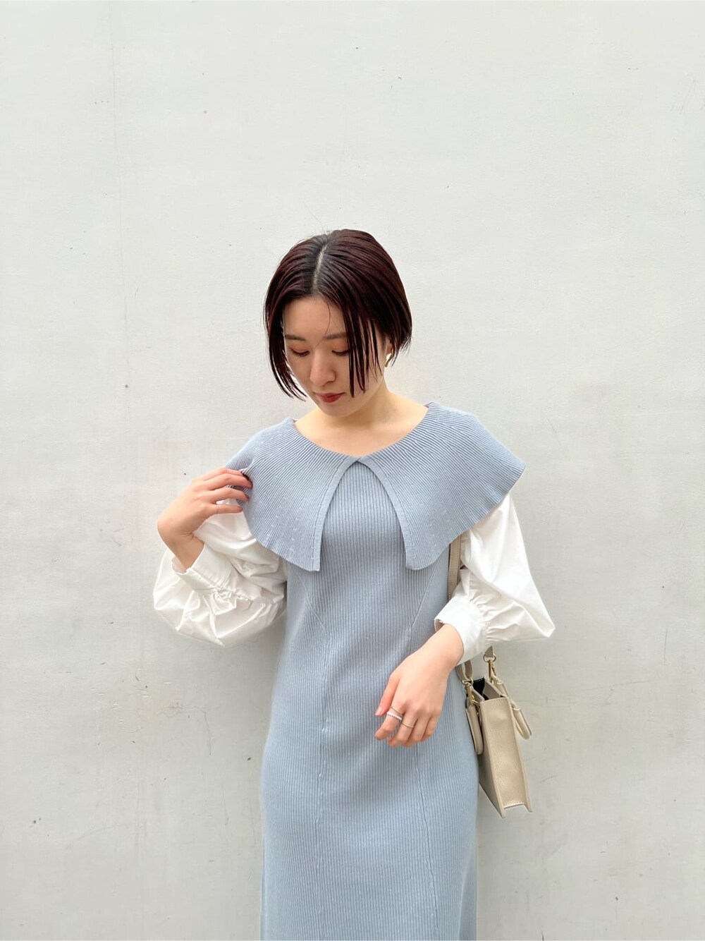 今年のトレンドがぎゅっと一枚に詰まったワンピース。 トレンド感ありながらも、どこか大人っぽく綺麗めな印象もあるのがLAGUNAMOONの魅力です。 ビッグカラーで、ネックラインが程よく空いたデザインなので小顔効果抜群。 体のラインを拾わないIラインシルエットなので体型カバーも叶うワンピース。 さっと一枚着るだけで今っぽいおしゃれが楽しめるのは優秀すぎる、!と入荷前からスタッフ人気もナンバーワンです。 今の時期はジャケットやカーディガンを合わせてコーディネートを楽しめますよ! クローゼットの中身がマンネリ化してきたなぁ、と言う今おすすめのワンピースです。