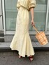 お洒落見え抜群な大人カジュアル 春のトレンドコーデ。 今季トレンドのイエローやデニムライク素材 きれい見えするワンピースやトレンチコートでトレンドを取り入れる事で、大人の女性も挑戦しやすいトレンドコーデです。 【アウター】 トレンチコートといえば、定番のベージュでパリッときれいめなイメージでしたが、デニムライクだと程よくカジュアルダウン。 とろみのある柔らかい素材なのでとても軽く、肩が凝ることなくさらっと羽織る事ができる良いところ尽くしのアウターです! ミドル丈でヒップまできれいに隠れる丈感なので、LAGUNAMOONのロング丈ボトムスやワンピースともバランスがとりやすい点もおすすめポイント。 デニムは流行無く定番のデザインなので、長く愛用できる一着になりそうです。 【ワンピース】 バックスタイルまで可愛い、セパレートタイプのワンピース。 女性らしいマーメイドシルエットですが、ハリ感あるシャツに近い素材なので程よくカジュアルに着ることができて普段からスニーカー等を合わせても着やすそうです! ワンピースとボレロは別々での着用もできるので、羽織を変えたりボレロをトップス使いしたりと着回しが楽しみです! 【シューズ】 毎年春夏の定番人気アイテム。 ウッドのヒールとソール部分がLAGUNAMOONのポイント。 7.5センチヒールで高めですが、安定感ある履き心地で歩きやすさ抜群です! 【バッグ】 パッチワークのデザインがポイントになるので、アクセサリー感覚で持てるバッグです。 【ピアス】 LAGUNAMOONらしい変形デザイン。 大ぶりのピアスはコーデをさらにお洒落に見せてくれるので、首元が空いたデザインの増える春夏に欠かせません!