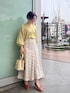 春のトレンドカラーをMIX。オフィスでも着たい通勤コーデ 【トップス】 とろみのある生地がとにかく着心地抜群なブラウス。 首元の空いたデザイン・袖口はゴムでキュッと留まるので、女性らしく華奢見えする点もお気に入りポイントです。 胸元が見える心配はないですが、インナーにキャミを着ていただくとバッチリです! 【スカート】 上品見えする刺繍レース柄に一目惚れ。 マーメイドスカートとフレアースカートの中間位のシルエットなので、腰回りをスッとキレイに見せてくれます。 LAGUNAMOONのスカートの中では元々短めの丈感なので、足首がスッキリ見えスタイルアップして見えますよ! 【バッグ】 見た目も可愛くて大容量のバケツ型バッグ。 どんなコーデにも相性抜群なので、コーディネートを考える時はついこのバッグを手にとってしまいます。笑 500m lペットボトルも入るサイズ感なので、荷物が多い方やお仕事用にもおすすめ。 【パンプス】 スクエアトゥでキレイ目になりすぎないので、デイリー使いしやすいパンプス。 Vにカッティングが入っていて、足の甲が見えることでスタイルアップ効果も◎ ロング丈のワンピースやパンツスタイルの時に良く合わせて履いています。 【アクセサリー】 コーデをシンプルにまとめたい時に大活躍。小ぶりなサイズ感なので顔まわりがスッキリ見えます。