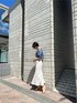 後ろ姿まで可愛い、大人っぽきれいめブラウスコーデ。 シアー感のあるブルー×アイボリーのスカートの組み合わせが涼しげで春夏におすすめです! 【トップス】 春〜秋と意外と長いシーズンで着まわせる袖ありブラウス。程よく透け感があるので、気温の高い真夏まで涼しく着られそうです! バックスタイルもリボンのデザインがポイントになって抜け目なく可愛いです! 【スカート】 ハイウエストでしっかりウエストマークされるのでスタイルアップ効果抜群! ややハリがあり、しっかりした生地感なので下着が透けづらいのも嬉しいポイントです。 【シューズ】 毎年春夏の定番人気アイテム。 ウッドのヒールとソール部分がLAGUNAMOONのポイント。 7.5センチヒールで高めですが、安定感ある履き心地で歩きやすさ抜群です! 【ピアス】 コーデをシンプルにまとめたい時に大活躍。 小ぶりなサイズ感なので顔まわりがスッキリ見えます。