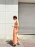 スタイルアップ効果抜群。綺麗めオレンジカラーのワントーンコーデ。 【トップス】 ツイード風ニットのデザインに一目惚れしたトップス!柔らかいニット生地なので、気温の高い日に着ていてもベタつかずに着ることができました! シンプルなボトムスも一気におしゃれ度アップして見える優秀トップスです! 【カーディガン】 さらりとした軽い生地で、冷房対策から日避けまで使う出番が多くなりそうな予感です! 実はUVカット効果もあるので真夏まで手放せません。 【スカート】 今季のLAGUNAMOONは、美シルエットのタイトスカートが沢山。 こちらも、細身だけど腰回りのラインを拾いすぎずに着ることができる嬉しいデザイン!綿混素材なので生地がしっかりしていて、下着のラインも気にせず履くことができますよ! 【シューズ】 毎年春夏の定番人気アイテム。 ウッドのヒールとソール部分がLAGUNAMOONのポイント。 7.5センチヒールで高めですが、安定感ある履き心地で歩きやすさ抜群です! 【バッグ】 どんなコーデにも取り入れやすいシンプルなデザイン。ペットボトルも入る大きめのサイズ感で荷物がしっかり入るので荷物が多めの方にもおすすめ。 牛革なので使う度に馴染み、味が出るので愛着が湧いて長く使いたくなるバッグです! 【ピアス】 シンプルなので、合わせやすくてスタメンの仲間入り。 【チョーカー】 ウェーブ型のマットなゴールドに一目惚れ。 綺麗めなコーデの時も取り入れやすくてお気に入り。