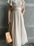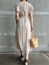 夏の一推し!さらっと着れる、涼しげで上品なワンピースコーデ 【ワンピース】 全国で大人気の夏ワンピ。ウエストマーク+袖口がフリルのようなデザインなので女性らしさがぎゅっと詰まった一枚。楊柳素材なので肌に当たる生地が柔らかく、優しい着心地に感動します!ウェーブ体型の私には柔らかい素材でウエスト細見えのシルエットがとっても嬉しい! 大人っぽく、上品な印象なのでデートや女子会にもぴったりです! 【シューズ】 毎年春夏の定番人気アイテム。 ウッドのヒールとソール部分がLAGUNAMOONのポイント。 7.5センチヒールで高めですが、安定感ある履き心地で歩きやすさ抜群です! 【バッグ】 パッチワークのデザインがポイントになるので、アクセサリー感覚で持てるバッグです。 【ピアス】 ツイストデザインが特徴的!小ぶりなのでどんなコーデにも相性ぴったりです。 【ネックレス】 ウェーブ型のマットなゴールドに一目惚れ。 綺麗めなコーデの時も取り入れやすくてお気に入り。