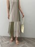 大好評のグラデーションシリーズに新色登場。 秋まで着まわせる落ち着いたオリーブカラーで大人っぽくコーディネート。 【ワンピース】 新色のオリーブは、落ち着いた色味なのでオトナっぽく涼しげな印象。 サラッとした糸を使用しているので肌あたりが良く気温の高い日も快適な着心地です!163cmでくるぶし上くらいの丈ですが、ベルトでアレンジしたりも可愛いので小柄な方にもぜひ着てみていただきたいです!高身長の方で丈がしっかり欲しい!という方はMサイズをおすすめします。 【バッグ】 シンプルなデザインなのでデザイン性のあるワンピースにも相性抜群。 500miペットボトルや長財布もすっぽり入る大きさです。 【サンダル】 柔らかいPVC素材なので履き心地◎ 安定感あるウッドヒールなので長時間履いていても足も痛くなりづらいです。 【ピアス】 存在感あるデザインがお気に入り。かなり大きめなのでコーデのポイントに。 【バングル】 腕に馴染むウェーブ型。手元まで一気にお洒落見え。