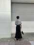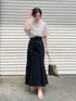 《きれいめカジュアル》二の腕カバーも叶う!トレンドMIXのブラウスコーデ 【トップス】 お洒落に、二の腕カバーも出来る優秀ブラウス。とろみのある柔らかい生地は着心地抜群。肌あたりの良さに驚きました! 袖口が2つあるので、2way着用出来る点もおすすめポイント。 肌の露出感も少ないのでオフィスにもおすすめ! 【スカート】 ハリのあるデニム生地なので、下半身をキュッと引き締めて見せてくれるマーメイドスカート。 骨格ウェーブ特有の気になるお尻や太もものラインを気にせず履けたので同じ悩みを持つ方にもとてもおすすめ。 163センチでMサイズを着用しくるぶしにかかる長さなので、150センチ〜155センチの小柄さんはSサイズがおすすめ。 【バッグ】 500mlのペットボトルも入る大容量バッグ。 シンプルなデザインなのでどのコーデにも相性抜群です。 【サンダル】 柔らかいPVC素材なので、足が痛くなることなくストレスフリーな履き心地。 ウッドヒールなので安定感も抜群です! 【ピアス】 かなり大ぶりなので存在感抜群。 【バングル】 大きめのチェーンデザインは付けるだけで一気にお洒落見えするのでおすすめ。
