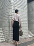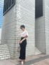 《ブラウス着回しコーデ》スタイルアップ効果バッグの綺麗めブラウスコーデ 【トップス】 取り外し可能なボウタイブラウス。ボウタイを取ると、シンプルかつ上品な印象になります。 二の腕がしっかり隠れるフレアースリーブなので、室内の冷房対策・二の腕カバーも叶う嬉しいポイント盛りだくさんです!! ほとんど透け感のないしっかりした生地ですが、とろんっとした肌触りで着心地◎ シワになりずらいので、デイリー使いに重宝しますよ! 【ボトムス】 ハイウエストのシンプルなニットタイトスカート。さらっとした糸をつかったニット生地なので暑い夏でもベタつかず快適。 巻きスカート風のデザインなので、足捌き良くとても歩きやすいですよ! 骨格ウェーブ体型でお尻や太ももが気になる私でもあまり目立たずスッキリ着ることが出来るので、同じ悩みを持つ方にもおすすめしたいタイトスカートです! 【バッグ】 シンプルなデザインなのでどんなコーデにも相性抜群。 500mlのペットボトルも入る大きめのサイズなので、ちょっとしたお出かけにも重宝します。 【シューズ】 安定感のあるウッドヒールで履き心地抜群。 柔らかいPVC素材なので肌に当たる部分も優しく、足も痛くなりずらいですよ! 【バングル】 太めのチェーンデザインなので手元が一気にお洒落見え。手首でしっかり留まるので、スポッと外れる心配もありません。 【ピアス】 小ぶりですが存在感あるツイストデザイン。キャッチの無いタイプなので気軽に付けやすいですよ!