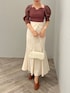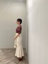秋先取りなブラウンカラーコーデ♫ 【トップス】 デコルテがきれいに見えるデザイン&控えめなボリュームスリーブで上半身の華奢見え叶うデザイン。肩幅しっかりある私が着ても、スッキリ見えました! 少し赤みのあるブラウンは、着た時に肌色を血色良く見せてくれるので普段あまり暗めの色を着ない方にもおすすめです。 デコラティブなデザインで一枚でスタイリングが映える為、デニム合わせなど気分によってカジュアルスタイリングも楽しめます! 【スカート】 気になるお尻、太ももをスッキリ綺麗に見せてくれるマーメイドスカート。 しっかりウエストマークされるのでウエストの細見え効果にも期待大です! 163センチ/骨格ウェーブ体型の私はMサイズを着用して腰まわり窮屈感なく、くるぶしくらいの丈感。 150〜155センチの方にも、Sサイズでお直しせず着用して頂けると思います! 【シューズ】 カッティングのデザインで足がスッキリ見えるデザイン。足の甲までしっかりホールドしてくれるので、安定感があり履き心地抜群ですよ♩ 【バッグ】 シンプルなコーデに映えるデザイン。アクセサリー感覚で身につけたいバッグです。 【ネックレス】 華奢で付けやすいデザイン。アジャスターで長さ調整することができるので、洋服によって長さ変えてつけています! 【ピアス】 シンプルで小ぶりなサイズ感なのでコーデ選ばず付けやすいです♪