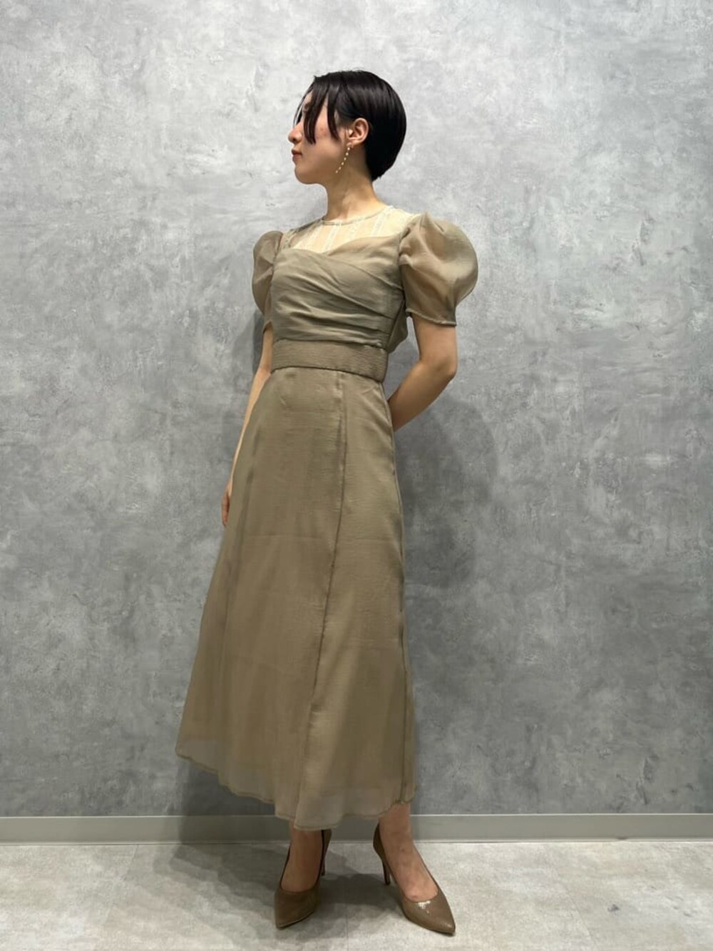 スタイルアップ効果抜群!オトナ可愛いドレスコーデ 【ワンピース】 全体的にスッキリとしたデザインなので、スタイルアップ効果に期待大なオケージョンワンピース。 ウエストの高い位置で切り替えになっているので、下半身も目立たず綺麗に見せてくれています♪ 丈は短めの作りなので150〜155センチの小柄さんにもおすすめですよ! 【シューズ】 足にフィットしパカパカしないのでヒールを履いた時のグラグラ感も少なく今までのストレスを軽減してくれて感動。 ベーシックカラーはもちろん、赤やブルーなどカラー物との相性も◎なのでオケージョンシューズとして一足あると重宝します!