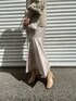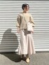 冬定番のざっくりknit♡大人カジュアルな休日コーデ 【トップス】 たっぷりボリューム感ある袖がカワイイポイント。 首元は鎖骨が綺麗に見えるくらいの空き具合で顔まわりをスッキリと、華奢見えしてくれます♩ 見ごろはシンプルなので、どんなボトムスとも相性抜群。アウトスタイルも、インもお洒落にバランスよく決まりますよ! 【スカート】 ウエストゴムでゆったりしたサイズ感が嬉しいマーメイドスカート。 ニットをインしてもごわつかず楽な履き心地なので冬のスタメンスカートになりそうです♩ ゆったりしたニットやスウェットを合わせたアウトスタイリングもお洒落に決まるので綺麗めからカジュアルまで色々なスタイリングを楽しめます♡ 163センチでMを着用して足首に少しかかる丈。150〜155センチの小柄さんもSだと擦ること無く履いて頂けそうです♩ 【シューズ】 柔らかいフェイクレザーでふかふかの履き心地! 明るい色の洋服を着ることが多いので、肌馴染みのいいベージュが合わせやすく今年のショートブーツはこちらに決めました!♩【バッグ】 コンパクトで持つだけでカワイイ巾着型。 携帯、ミニ財布、ハンカチが入るサイズ感です! 【ネックレス】 シンプルなデザインでコーデのワンポイントにおすすめ。
