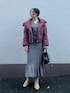 大人カワイイピンクブラウンの中綿コートコーデ♩ 【アウター】 コロンっとしたフォルム感が可愛い中綿コート。 軽い着心地で袖にゆとりがあるので、ボリュームスリーブのニットの上からも羽織りやいです! お尻に少しかかるくらいのショート丈なのでバランス良く、スタイルアップ効果抜群です♩ 【ワンピース】 ピッタリとしたシルエットでボディラインを綺麗に見せてくれるワンピース。 163センチでSを着用してスネにかかるくらいなので少し短めの丈感です! 小柄さんにも丈感気にせずにロング丈で着ていただけます♡ 来た時の袖のたぽっと感がとても可愛いですよ♩ 【シューズ】 柔らかいフェイクレザーでふかふかの履き心地! 明るい色の洋服を着ることが多いので、肌馴染みのいいベージュが合わせやすく今年のショートブーツはこちらに決めました!♩【バッグ】 コンパクトで持つだけでカワイイ巾着型。 携帯、ミニ財布、ハンカチが入るサイズ感です!