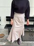シンプルで上品な印象のマーメイドスカートコーデ 【アウター】 一枚仕立ての軽いロングコートなので、カーディガン感覚でさらっと羽織れます♩ かなり広めの袖口のつくりなので、ボリュームスリーブや地厚のニットの上からも羽織りやすいですよ〜! 163センチ/Mサイズ着用して脛にかかる丈感なので、小柄さんにもSサイズで長すぎず着て頂けそうです! 電車やバス通勤の方や、ずっしりとしたロングコートが苦手な方におすすめです♡ 【トップス】 肩の透け感あるフラワー柄がポイントの綺麗めニットトップス。 濃いパープルが混ざったような暗めのチャコールグレーなので上品で大人な印象です! インナーには黒を選ぶと透け気にせずに着ていただけます♩ 【スカート】 ウエストゴムでゆったりしたサイズ感が嬉しいマーメイドスカート。 ニットをインしてもごわつかず楽な履き心地なので冬のスタメンスカートになりそうです♩ ゆったりしたニットやスウェットを合わせたアウトスタイリングもお洒落に決まるので綺麗めからカジュアルまで色々なスタイリングを楽しめます♡ 163センチでMを着用して足首に少しかかる丈。150〜155センチの小柄さんもSだと擦ること無く履いて頂けそうです♩ 【シューズ】 先端がキュッと細いデザインなので足元からスタイルアップして見えます♩ 安定感あるヒールの形なので歩きやすさも◎ 【ピアス】 コロンっとした不思議なカタチが可愛いです♡