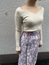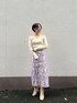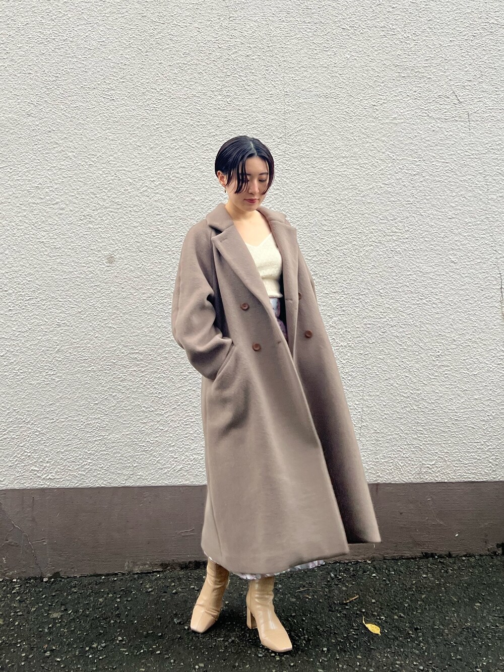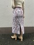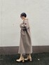 ピンクのジュイ柄スカートがポイント。優しい印象のスカートコーデ 【アウター】 ブラウンにベージュを混ぜたような柔らかい色味のカラー。 しっかり重量感あるように見えますが、肩にずっしり乗るような重たさはあまり感じません。 袖口にもゆとりがあるので、ボリュームスリーブのニットの上から羽織っても問題無し♩LAGUNAMOONの袖に特徴のあるトップスを好んで着る私にとってかなり重要なおすすめポイント。 163センチでSサイズを着てスネにかかる丈感なので、Mサイズだと高身長さんも長め丈で着て頂けますよ♡ 【トップス】 ネックが横にひろく空いたデザインなのでデコルテが見えて華奢見え効果◎ インナーには細いキャミソールを合わせて着ると、インナーも見えずに着ることができます! 【スカート】 高めのウエスト位置でキュッとキレイに見せてくれるデザインなので細見え効果に期待大! 背中のベルトでウエストサイズ調整可能なので華奢な方にもおすすめ。 163センチでMサイズ着用してしっかりくるぶしにかかる丈感です! 一枚で華やかになる柄なのでトップスはシンプルなものがおすすめ!デートやオフィスコーデにも活躍しそうです🫶 【シューズ】 柔らかいフェイクレザーでふかふかの履き心地! 明るい色の洋服を着ることが多いので、肌馴染みのいいベージュが合わせやすく今年のショートブーツはこちらに決めました!♩ 【ピアス】 コロンっとした不思議なカタチがかわいいです♡