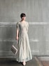 透明感2倍増し♡ミントグリーンドレスの結婚式コーデ 【ワンピース】 人気シリーズに夏にぴったりの新色登場♡ 上品な印象の淡いミント。お肌の透明感が増して見えるカラーで着ていて気分が上がる一枚♡ おへそより少し高めの位置でウエストマーク出来るので細見え効果に期待出来ますよ〜! 163センチでMサイズ着用し、くるぶしにかかる丈感。長めの作りなので165センチ〜の高身長さんにも短すぎず着て頂けます! 実は、小柄さんにもオススメのXSサイズもあるので丈感の悩みから解放されます💖 【シューズ】 足にフィットしパカパカしないのでヒールを履いた時のグラグラ感も少なく今までのストレスを軽減してくれて感動。 ベーシックカラーはもちろん、赤やブルーなどカラー物との相性も◎なのでオケージョンシューズとして一足あると重宝します! 【バッグ】 帛紗付きで携帯もハンカチもすっぽり入る大きめサイズ。チェーンがレースを傷つけないよう、肩にかける部分はラバーになっているので持ちやすいですよ♩ 【ピアス】 華奢な揺れるデザインで顔まわりがパッと華やぎます!