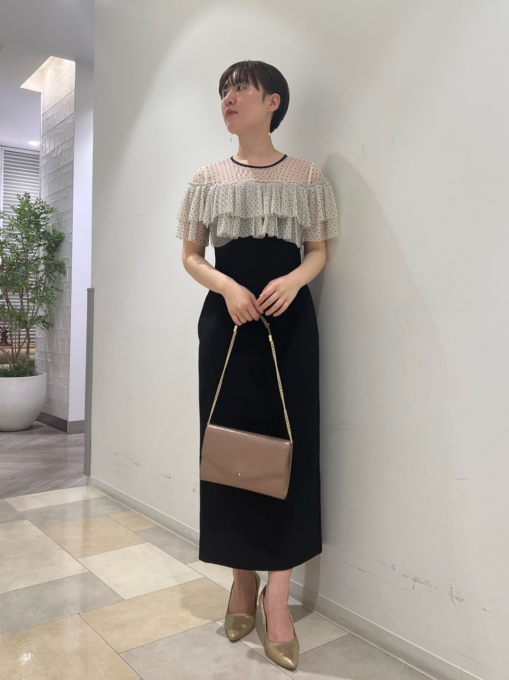 結婚式や記念日デートにおすすめ。周りと差のつくドレスコーデ 【トップス】 ドットチュールのデザインがお洒落♡ 結婚式だけでなく、レストランでのお食事など少しおめかししたい日にも着て頂きやすそうですよ♡ 重なったチュールが二の腕もしっかりカバーしてくれますよ〜♡ ピタッとしすぎないIラインシルエットなので緊張感なくスタイルアップを叶えてくれます💖 163センチでMサイズ着用。足首がしっかり見える丈感です! 160センチ以下の方にはSサイズがおすすめ。 【シューズ】 足にフィットしパカパカしないのでヒールを履いた時のグラグラ感も少なく今までのストレスを軽減してくれて感動。 ベーシックカラーはもちろん、赤やブルーなどカラー物との相性も◎なのでオケージョンシューズとして一足あると重宝します! 【バッグ】 帛紗付きで携帯もハンカチもすっぽり入る大きめサイズ。チェーンがレースを傷つけないよう、肩にかける部分はラバーになっているので持ちやすいですよ♩ 【ピアス】 華奢な揺れるデザインで顔まわりがパッと華やぎます!