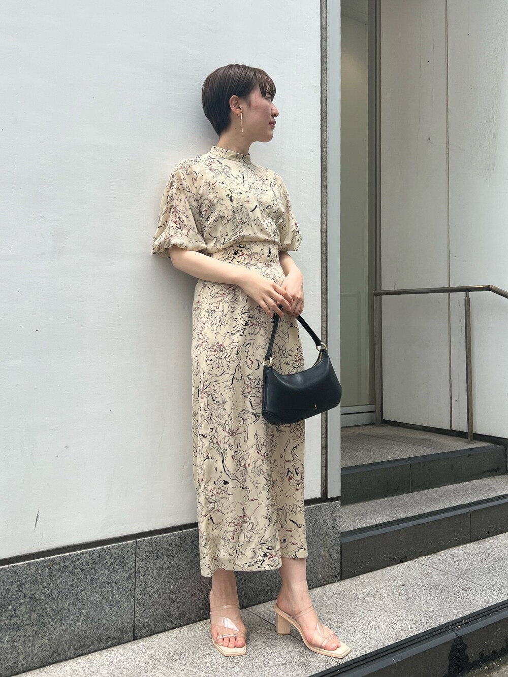 気分を上げたい日にはコレ! 上品な印象のフラワー柄ワンピースコーデ 【ワンピース】 上品な印象のフラワー柄は着るだけで気分が上がる♡クリーム色にボルドーや黒の模様が散りばめられたデザインが珍しく、お洒落見えします♡デートや女子会、きちんとしたお食事会などにオススメの一枚。 背中の紐で肌見せ調整可能なので肌見せがあまり得意じゃない方も安心して着て頂けます! お袖部分だけ少しシアー感あるデザインなので、抜け感がありボリュームスリーブもすっきりした印象ですよ♡ ウエスト部分は柔らかいゴムなので窮屈感なく楽な着心地。綺麗なIラインシルエットなのでスタイルアップ効果抜群です✌️ 163センチでMサイズ着用して足首上3センチほどのすっきりした丈感。長すぎないので小柄さんにもオススメのワンピースです! 【バッグ】 JWPEIからセレクトされたバッグ。シンプルなデザインなのでテイスト選ばずコーデに取り入れやすいです♡ 【シューズ】 綺麗めコーデもカジュアルコーデもお洒落に決まりますよ! 柔らかい素材感なので、ストラップ部分が肌に食い込むことなく足の痛さは全く感じません! 足の甲をしっかりホールドしてくれるので普段ヒールをあまり履かない方にもおすすめ。 【ピアス】 ゴールドの揺れる華奢なデザインが可愛いです♡
