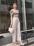 気取らずシンプルだけどお洒落に。綺麗めカジュアルな夏のパンツコーデ 【トップス】 細かいラメがポイント。 デコルテが綺麗に見えるスクエアネックなので、ボリュームのある袖ですが顔まわりをスッキリ見せてくれる効果アリです◎ ラメ入りニットは、着用時に肌に当たってチクチクするものもありますが、こちらはチクチク感無く着ることができたのって敏感肌の方にもおすすめ。 【パンツ】 LAGUNAMOONのハイウエストパンツはとにかくスタイルアップ効果がスゴイ!! トップスをインして見えるウエストデザインにも拘りが詰まっています♡ 骨格ウェーブ体型なので、下半身のシルエットが綺麗に見えるパンツはかなり貴重。 腰張りを目立たせず、センタープレスのおかげで足が真っ直ぐに見えるので同じ悩みを持つ方にも挑戦して頂きたいです♡ 夏でもさっぱりした着心地のパンツ素材なので、履き心地快適!普段使いはもちろん、お仕事用としてもおすすめの一枚。 163センチでMサイズを着用し、くるぶしにかかる丈感と少し短めのサイズ感。 155センチ位の身長の方だとSサイズでスニーカーでも擦らずに着て頂けますよ♡ 【バッグ】 JWPEIからセレクトアイテム💕 持ち手部分がくしゅくしゅっとしていて、持っているだけでコーデが可愛くなるデザイン。 コンパクトサイズですがしっかりマチがあるのでハンカチや財布もすっぽり入ります! 【シューズ】 綺麗めコーデもカジュアルコーデもお洒落に決まりますよ! 柔らかい素材感なので、ストラップ部分が肌に食い込むことなく足の痛さは全く感じません! 足の甲をしっかりホールドしてくれるので普段ヒールをあまり履かない方にもおすすめ。 【ピアス】 ゴールドの揺れる華奢なデザインが可愛いです♡
