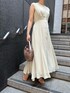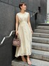 さらっと清楚感溢れるワンピースコーデ 【ワンピース】 軽い素材で涼しげな印象のワンピース。 パイピングのデザインが入っているので、淡いカラーのワンピースですが縦にスッキリ見せてくれますよ♡ ウエスト位置の切り替えが高いのでスタイルアップ効果抜群。 ゆったり着られるサイズ感ですが、背中部分の紐でキュッと締めることもできるので好みのサイズ感で調整して着てみて下さい♡ 163センチでMサイズ着用し、くるぶしにかかる長めの丈感。 Sサイズだと、丈感マイナス5センチ短くなるので小柄さんにもおすすめです。 【バッグ】 編みデザインがお洒落♡ しっかりマチがあり財布、携帯、ハンカチなど荷物もすっぽり収まりそうです♡ 【シューズ】 綺麗めコーデもカジュアルコーデもお洒落に決まります❤︎ 柔らかい素材感なので、ストラップ部分が肌に食い込むことなく足の痛さは全く感じません! 足の甲をしっかりホールドしてくれるので普段ヒールをあまり履かない方にもおすすめ。 【ピアス】 華奢な揺れるデザインが上品♡顔まわりが華やぎます! 【ネックレス】 シンプルなデザインなのでどんなコーデにも合わせやすいですよ!