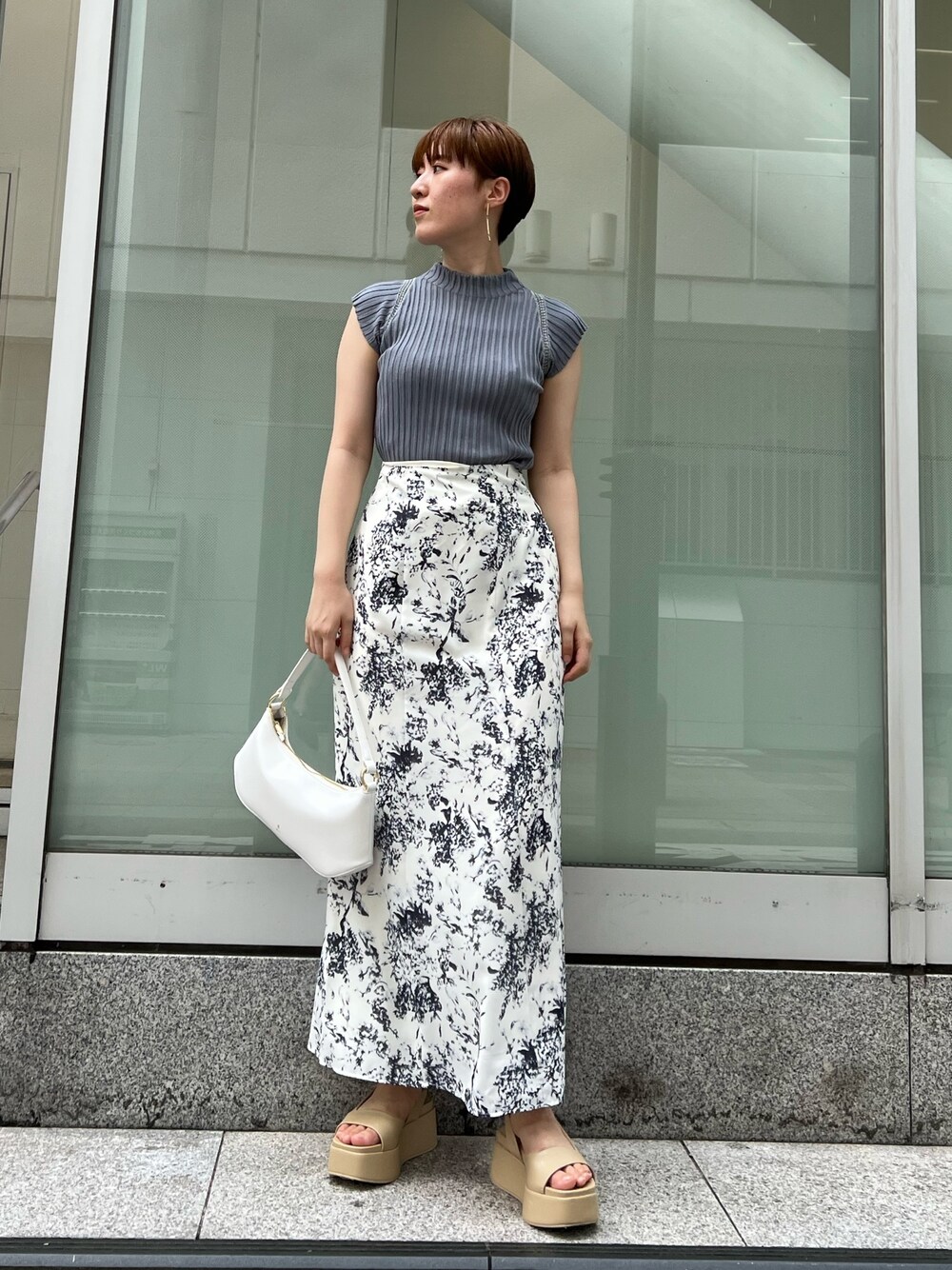 大人っぽく♡ブルーコーデ 【トップス】 一癖ありなデザインがLAGUNAMOONらしいラグラントップス♡ 真夏に着ても暑苦しくない、さらっとした着心地です♡高さの無いハイネックなので首回りも窮屈にならない着心地です✌️ 【スカート】 タイトすぎずフレアーすぎないナローシルエットなので、程よいフィット感がスタイルアップさせてくれます♡ 163センチでMサイズ着用しくるぶしにかかる長めの丈感。150〜155センチの小柄さんにはSサイズをお勧めします! シンプルなデザインであれば、ブラウス・ニット・Tシャツなど様々なトップスとの着回しコーデを楽しめますよ♡ 【バッグ】 JWPEIからセレクトされたバッグ。シンプルなデザインなのでテイスト選ばずコーデに取り入れやすいです♡ 【シューズ】 厚底なのでスタイル盛れて、歩きやすいです◎ かかとのベルト部分が一部ゴム使用なので、歩く時も足にフィットして疲れづらいですよ♡ 【ピアス】 さらっと揺れるデザインがかわいいです♡