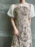 ふわっと華やかな印象のドレスコーデ 【ワンピース】 チュール×ジャガードレースのドッキングデザインが上品で華やか♡ ふわっと透け感のあるチュールが顔まわりを明るく見せてくれますよ〜♡ ウエスト・ヒップのあたりは体にピッタリせず、やや余裕を持って着れるサイズ感。 163センチでMサイズを着用しくるぶしがしっかり見える丈感なので、150センチ〜155センチの小柄な方もSサイズを選んで頂くと長すぎずに着こなして頂けます! 肩部分が透けるデザインなので、ベアトップやブラトップの着用がおすすめ。 【シューズ】 足にフィットしパカパカしないのでヒールを履いた時のグラグラ感も少なく今までのストレスを軽減してくれて感動。 ベーシックカラーはもちろん、赤やブルーなどカラー物との相性も◎なのでオケージョンシューズとして一足あると重宝します! 【バッグ】 帛紗付きで携帯もハンカチもすっぽり入る大きめサイズ。チェーンがレースを傷つけないよう、肩にかける部分はラバーになっているので持ちやすいですよ♩ 【ピアス】 小粒パールがたくさん付いたデザインなので、キラキラっと華やかに見えます♡