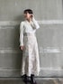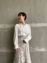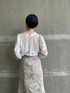 女性らしく上品な印象のブラウスコーデ 【トップス】 とろみのある、程よい透け感のブラウスなので綺麗めになりすぎずにデイリー使いしやすい一枚。 首元がVネックになっており、お袖のボリュームが出過ぎないタックスリーブなので顔まわりがスッキリ見えます◎ オフィスコーデにもおすすめ。 【スカート】 モール刺繍がポイント。コーデの主役になるスカートです! ハイウエスト&ストンっと綺麗な落ち感のあるシルエットなのでスタイルアップ効果抜群。 163センチでMサイズ着用しており、足首がしっかりと見える丈感なので小柄さんにもスッキリと着こなして頂けます! 冬場は、リブニットやざっくり編みのゆったりしたニット合わせもおすすめ。 【ピアス】 ころっとした小さめなサイズ感がポイントになり可愛いです♡