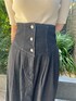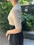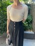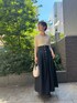 大人カジュアル♩デニムコーデ 【トップス】 アシンメトリーなネックデザインがシンプルだけどお洒落♡ しっとりしたニット素材なので着心地抜群。 肘上までの袖の長さなので秋口重宝しますよ♩ 【ジャケット】 CIMARRONJEANSとのコラボアイテム。 袖口広めのぽってりしたフォルム感がたまらなく可愛いです♡ ショート丈なのでスッキリした着こなしが◎ 柔らかい生地なのでデニム特有のゴワつき無く羽織れます! ハイウエストのボトムスやロングスカートどの相性抜群ですよ♡ 【スカート】 コルセット風のウエストデザインが細見えポイント。 腰から切り替えになりスカートが広がるデザインなので、お尻・太ももをカバーしてくれます◎ 163センチでMサイズ着用し、くるぶしにかかる丈感。ニットをインしても余裕がありました! ウエストサイズにゆとりが欲しい方や腰回りカバーしたい方におすすめです。 【シューズ】 シンプルなデザインのミュールは靴に困った時の救世主! ふかふかのクッションのような履き心地が魅力♡ 普段Mサイズを選びますが、こちらはSサイズ着用しかかとが少し出るくらい。 足のサイズが24.5センチ〜25.0センチの方も履いて頂きやすいと思いますよ♡ 【バッグ】 小ぶりなサイズ感が可愛い! 三つ折り財布、ハンカチがすっぽり入ります。