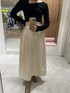 レディライクなモノトーンコーデ 【トップス】 アシンメトリーなデザインの首元がデコルテ華奢見え! タートルネックやクルーネックのニットは定番なので何着か持っていますがこのデザインはコーデの雰囲気を変えたい時にぴったり! 肌あたりの柔らかいニットなので着心地も◎ 下着のストラップが見える心配とありませんよ♩ 【スカート】 ボリュームの出過ぎない、カーヴィーシルエットがこなれ感ある印象のスカート♡ 今までに無かったこの形に一目惚れです! ウエストデザインのzip &クシュっとしたデザインがポイントになるのでインのスタイリングもおすすめ。 少しハリのあるシャカシャカとした素材なのでシワになりづらく、シーズン問わず着ていただけそうです! 163センチでSサイズ着用しくるぶし上3センチほど上の丈感。小柄さんにもスッキリと着こなせて頂けますよ〜! 【ブーツ】 ふかふかの履き心地に感動♡ 普段24.0〜24.5サイズでMサイズを選んでいます!靴下を履いていても若干余裕があるので窮屈感なく足が痛くならず嬉しい♡頂けますよ! 【ピアス】 雫型の揺れるデザインがコーデのポイントになります♡